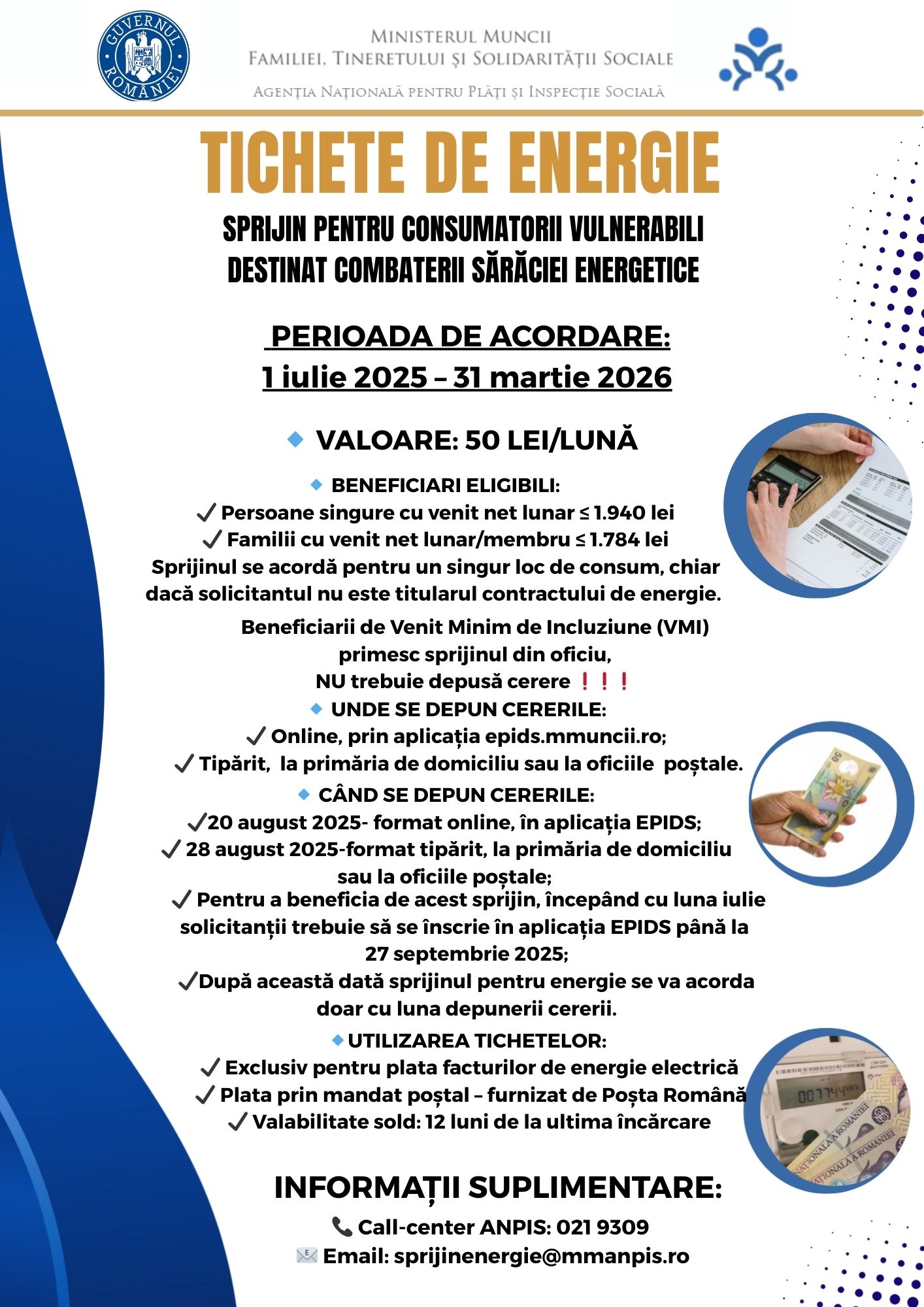 Anunt privind sprijinul pentru consumatorii vulnerabili